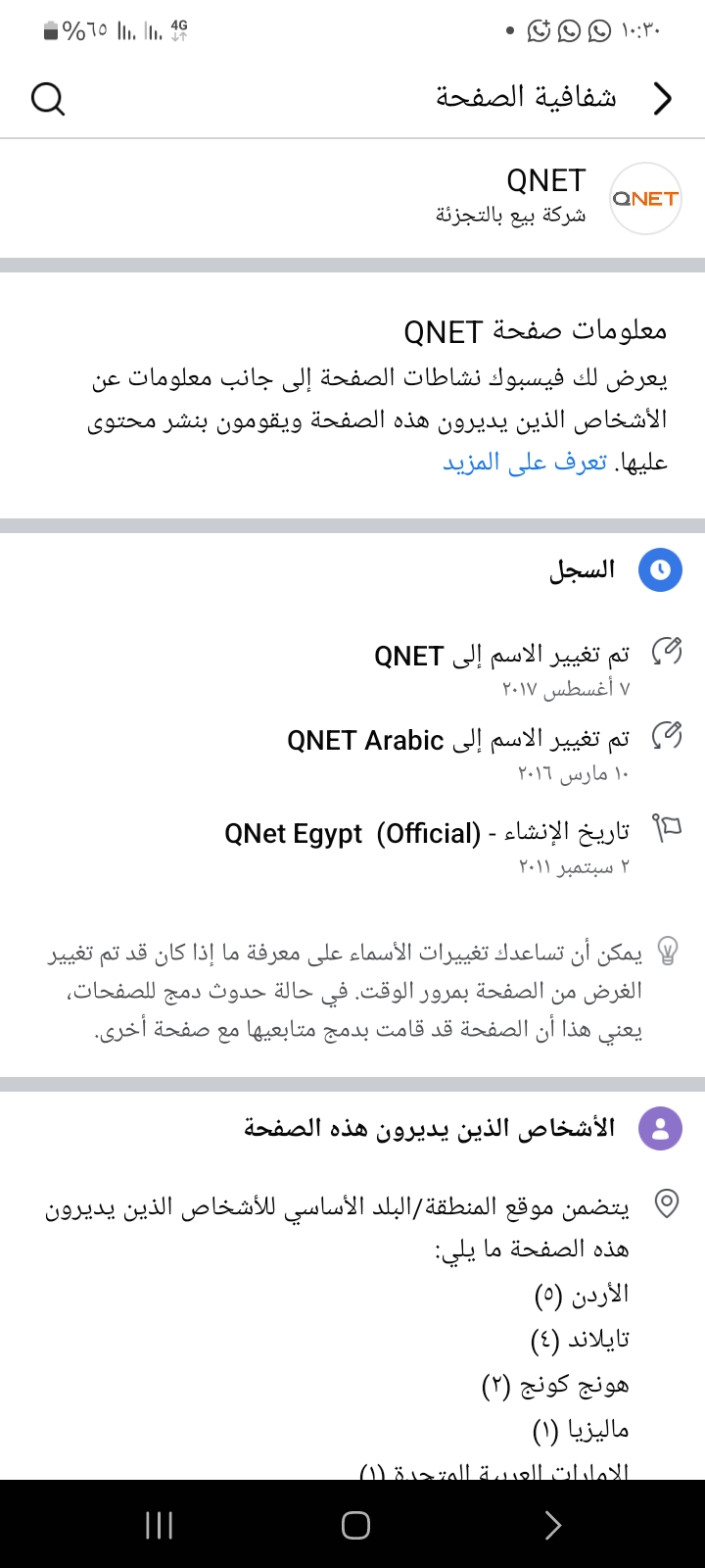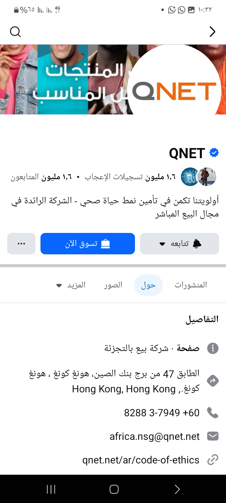 شركة QNET، التي تقدم نفسها على أنها شركة بيع مباشر عالمية، تأسست سنة 1998 في هونغ كونغ. ومن خلال تحليل سجل صفحتها الرسمية على فيسبوك، يتضح أن الاسم مر بعدة تغييرات، حيث بدأت باسم *QNet Egypt (Official)* ثم تحولت إلى *QNET Arabic*، وأخيرًا إلى *QNET* عام 2017.