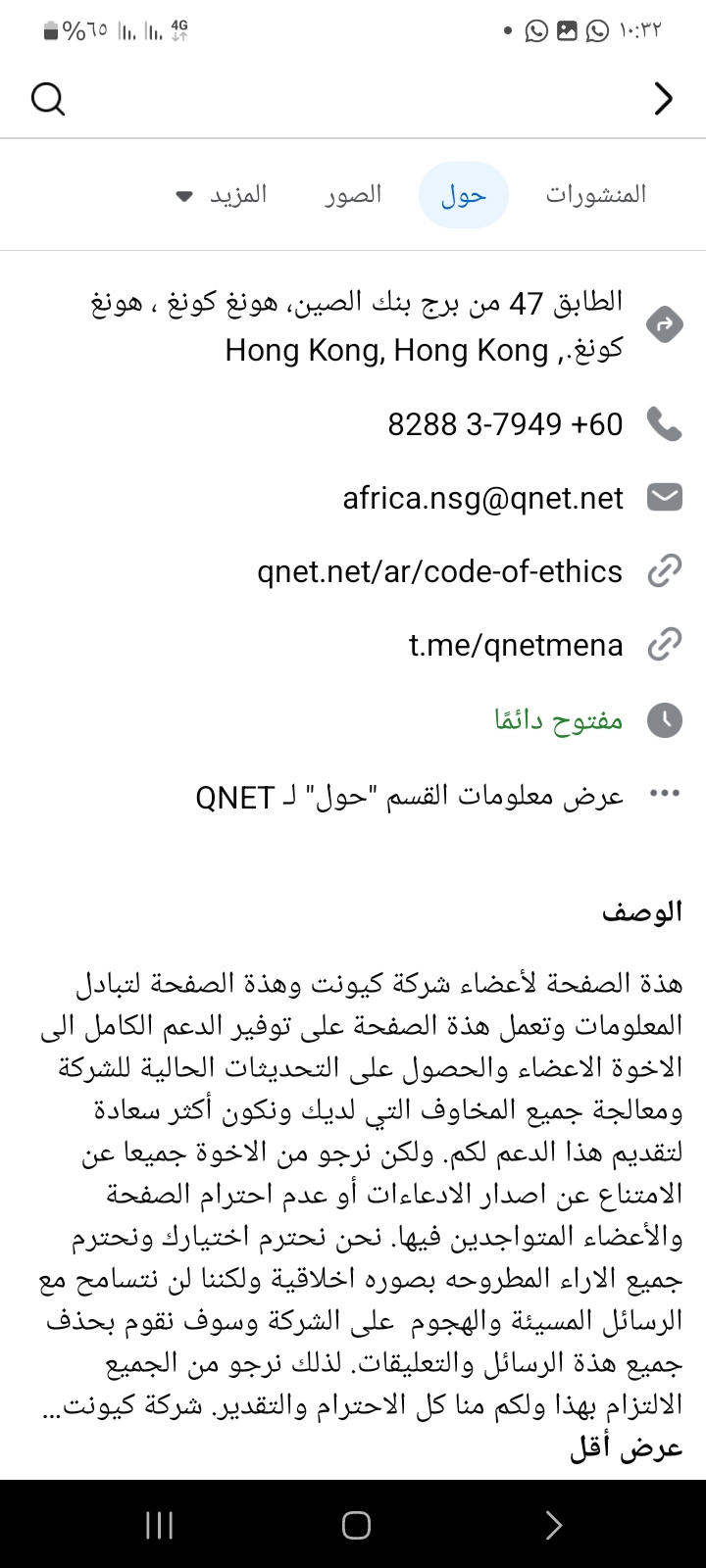 – نحذر المواطنين من التعامل مع أي جهة أو فرد يزعم تمثيل QNET أو غيرها من شركات التسويق الشبكي دون تحقق رسمي.