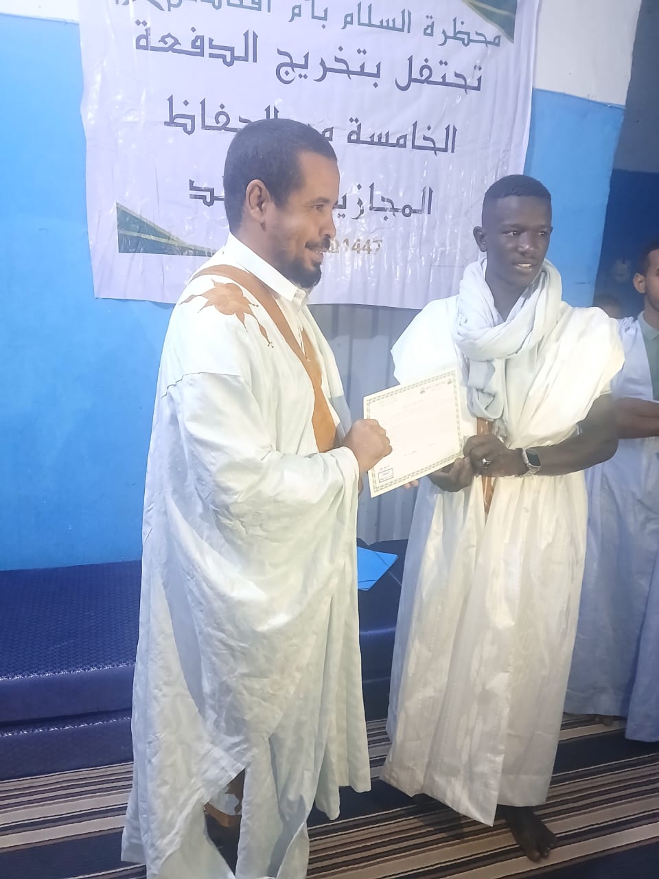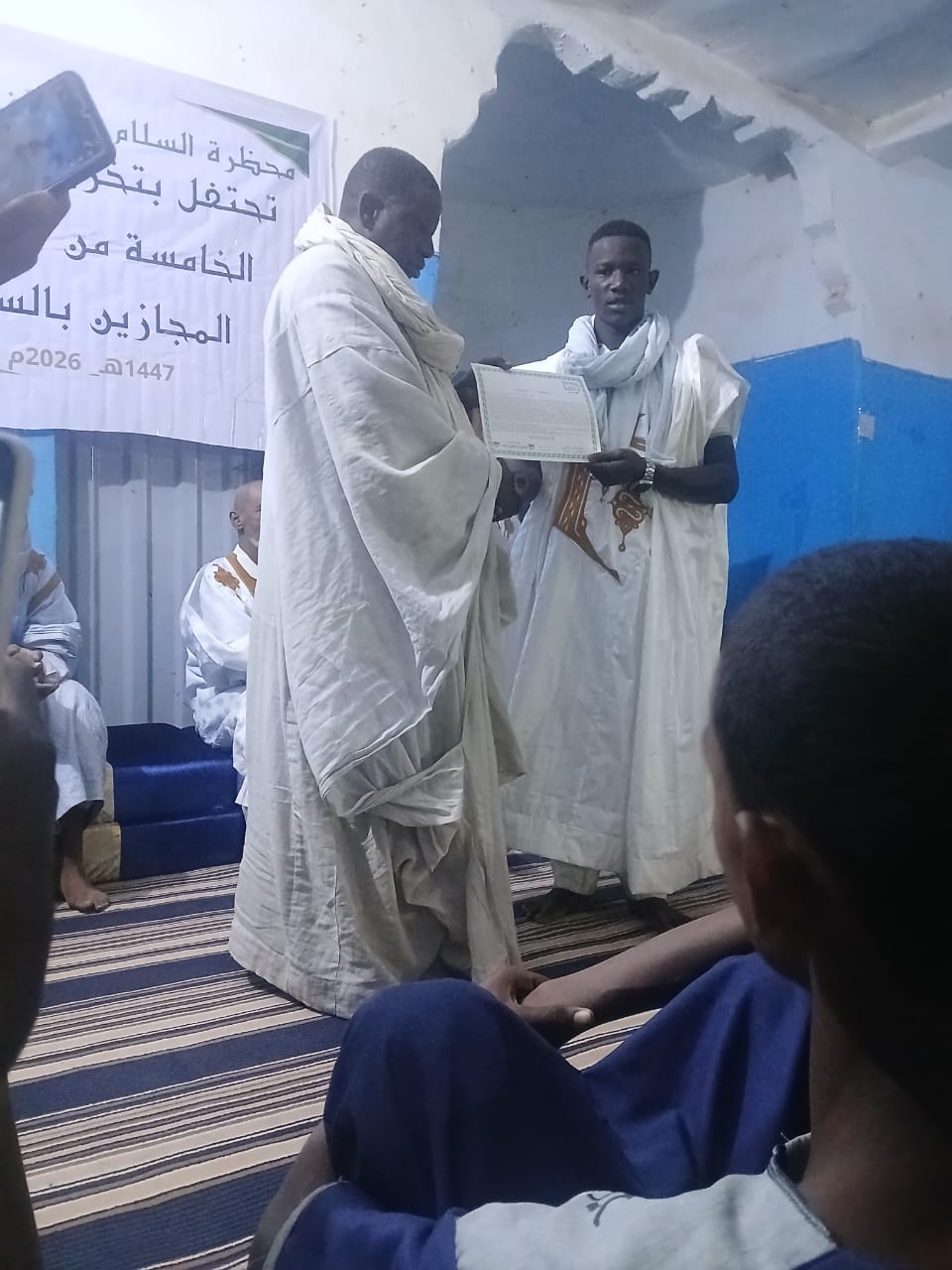 ويأتي هذا التخرج ليعزز الحضور العلمي لمحظرة السلام، ويؤكد استمرارها في أداء رسالتها في تخريج حفاظ مجازين بالسند، يحملون أمانة القرآن الكريم جيلاً بعد جيل.