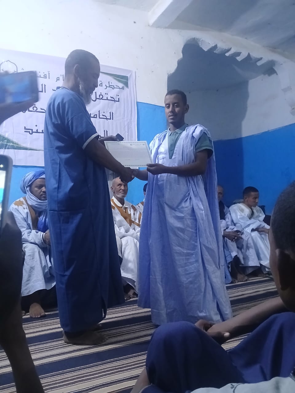 المتابع: شهدت قرية أم آفنادش، ليلة الثاني من شهر رمضان المبارك 1447هـ، حدثًا قرآنيًا بارزًا تمثل في تنظيم محظرة السلام حفل تخرج الدفعة الخامسة من حفاظ كتاب الله المجازين بالسند، وذلك عقب صلاة التراويح، وسط حضور جمع من العلماء والأئمة ووجهاء المنطقة وأسر الطلاب.