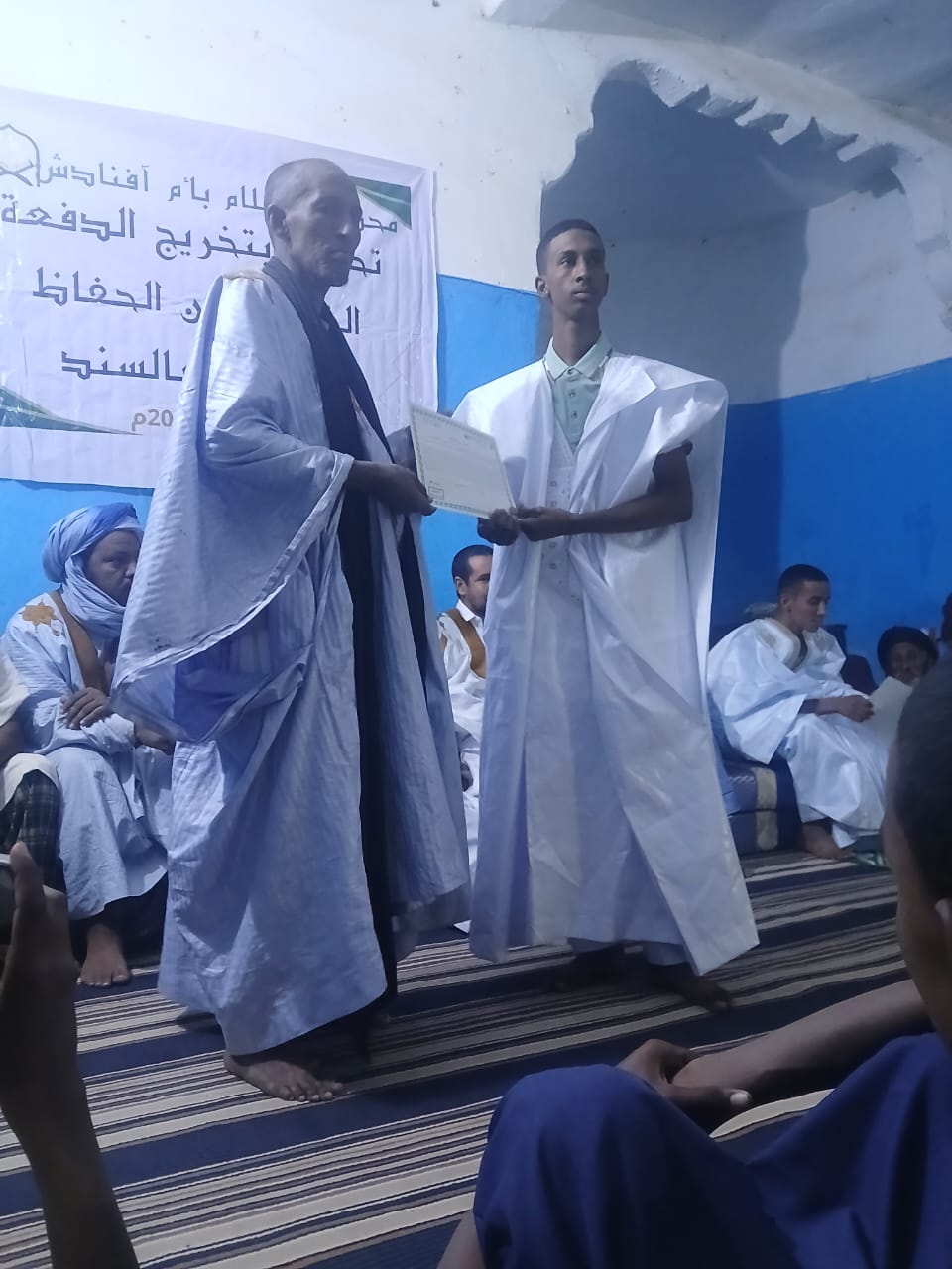 وتُعد محظرة السلام بأم آفنادش واحدة من المؤسسات القرآنية التي واظبت على تخريج الحفاظ المجازين، حيث تمثل هذه الدفعة الخامسة امتدادًا لمسار علمي متواصل يهدف إلى ترسيخ منهج الإتقان في الحفظ وربط الطلاب بسلاسل الإسناد المتصلة، حفاظًا على خصوصية المدرسة المحظرية الموريتانية المعروفة بعنايتها بالسند والتحقيق.