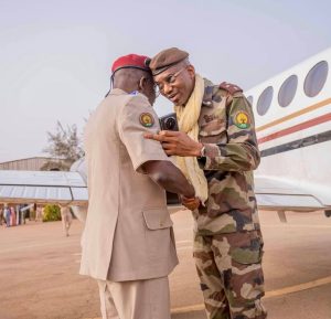 وبعد دقائق، اصطف الوفدان البوركيني والمالي لتشكيل حرس شرف لاستقبال الوفد النيجري، برئاسة وزير الدولة ووزير الدفاع الوطني، الفريق أول ساليفو مودي.